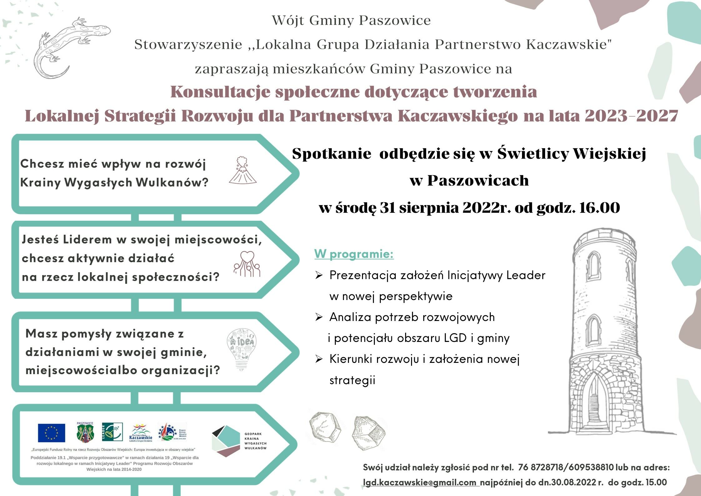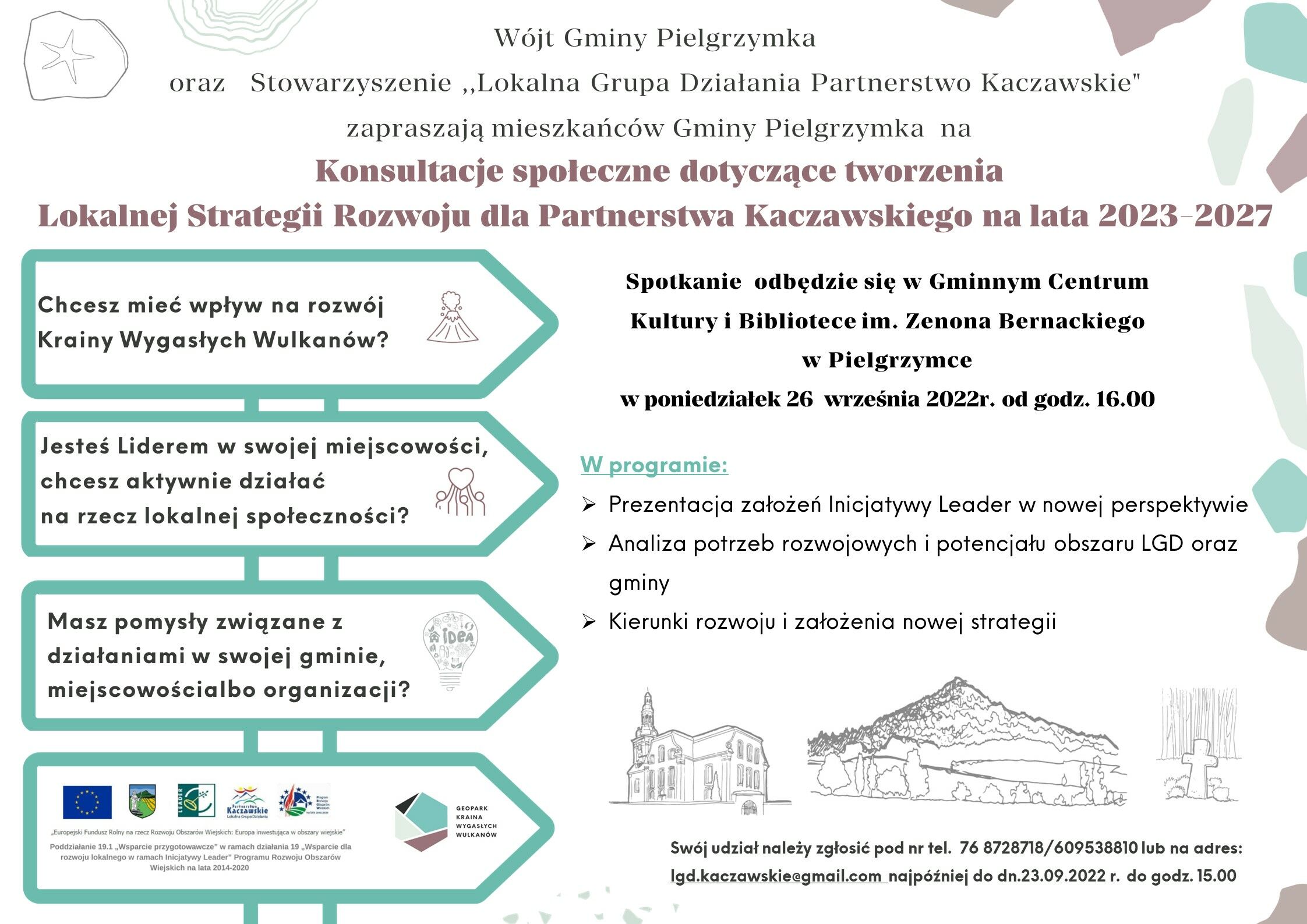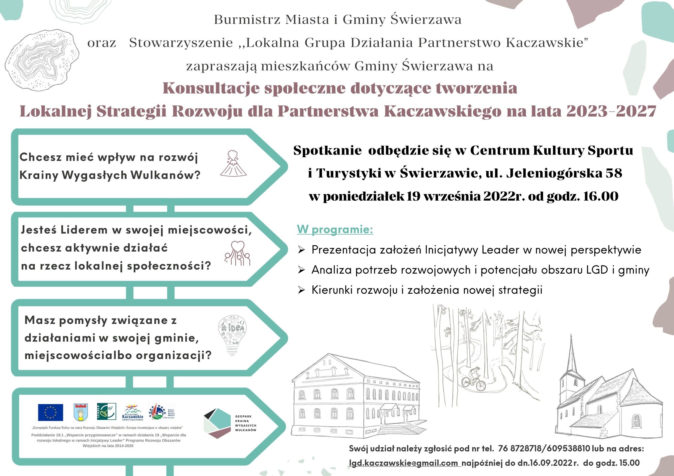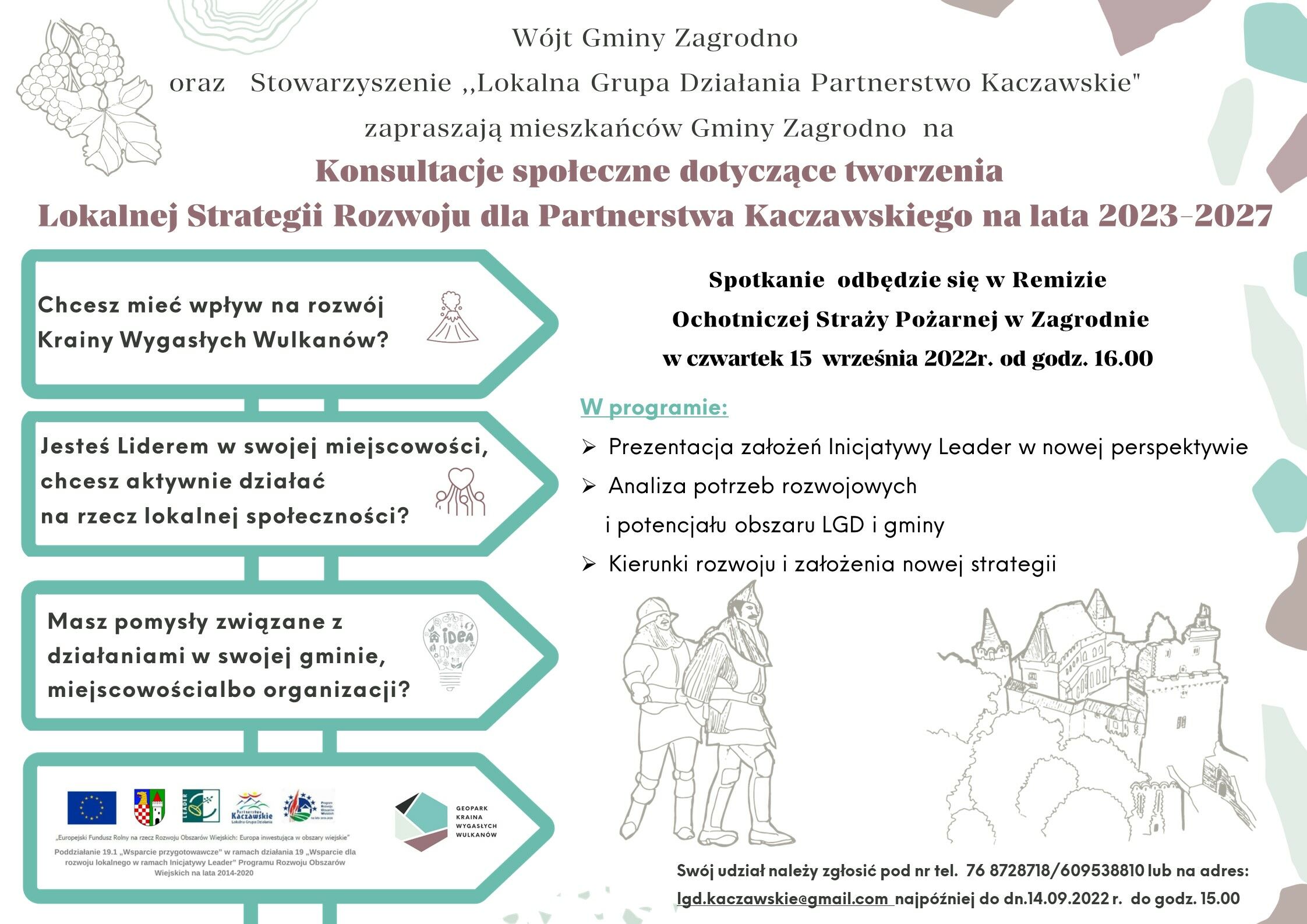 W razie wątpliwości, prosimy o kontakt z panią Gabrielą Męczyńską, Dyrektor Biura Stowarzyszenia "Lokalna Grupa Działania Partnerstwo Kaczawskie" (tel. 768728718, 609 538 810).